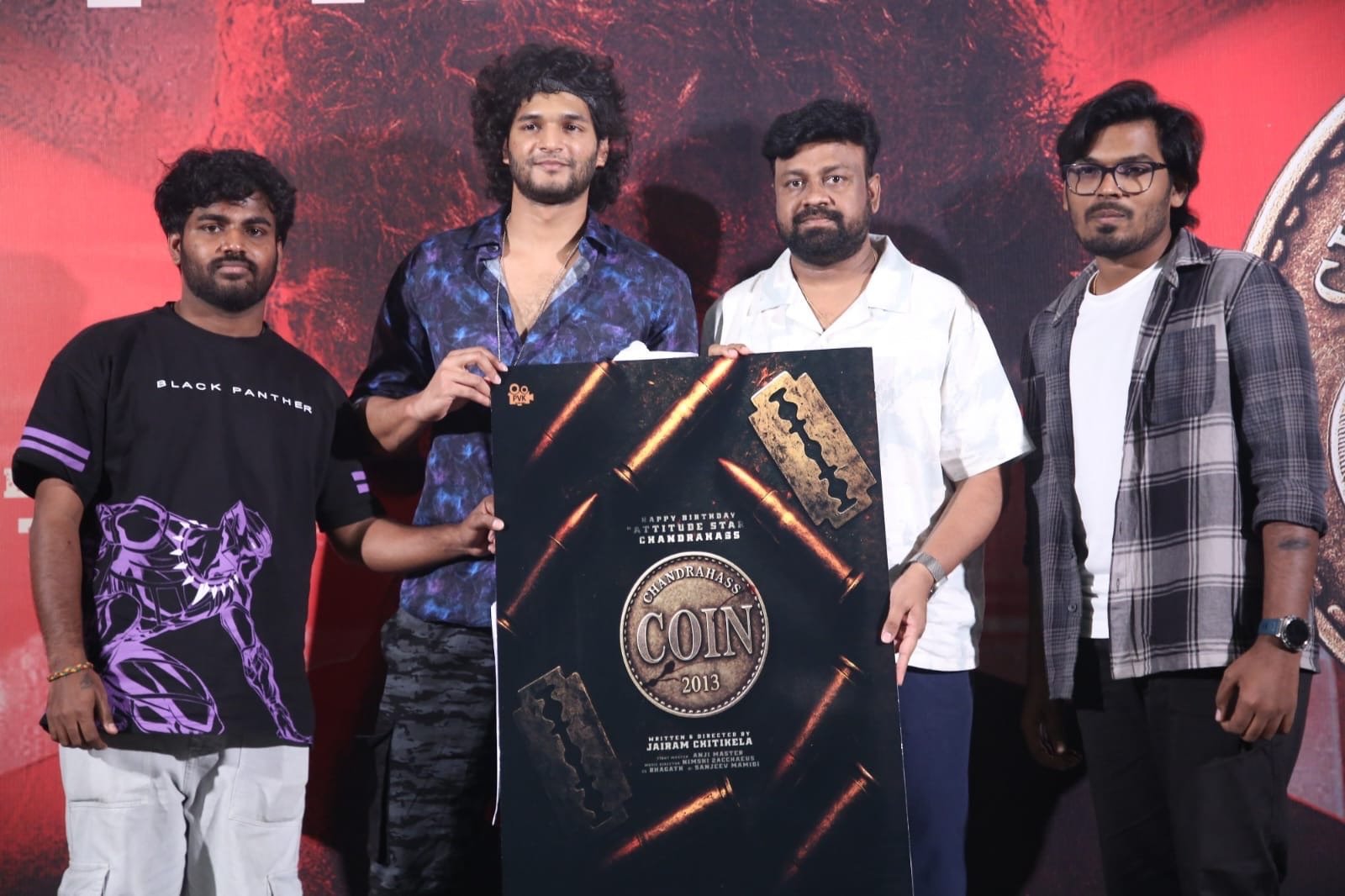 వరుస చిత్రాలతో ఆడియెన్స్‌ను ఆకట్టుకునేందుకు ఆటిట్యూడ్ స్టార్ చంద్రహాస్ నిరంతరం పని చేస్తున్నారు. హీరోగా వరుస చిత్రాలతో బిజీగా ఉన్న ఆటిట్యూడ్ స్టార్ చంద్రహాస్‌తో శ్రీకాంత్ రాజారత్నం నిర్మాతగా జైరామ్ చిటికెల తెరకెక్కిస్తున్న చిత్రం ‘కాయిన్’. చంద్రహాస్ పుట్టిన రోజు (సెప్టెంబర్ 17) సందర్భంగా ఈ మూవీ గ్లింప్స్, టైటిల్ పోస్టర్‌ను బుధవారం నాడు రిలీజ్ చేశారు. ఈ మేరకు నిర్వహించిన కార్యక్రమంలో..