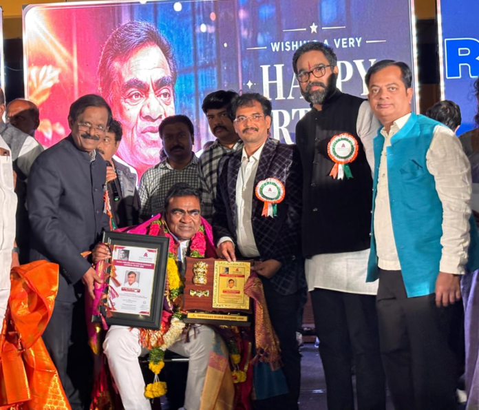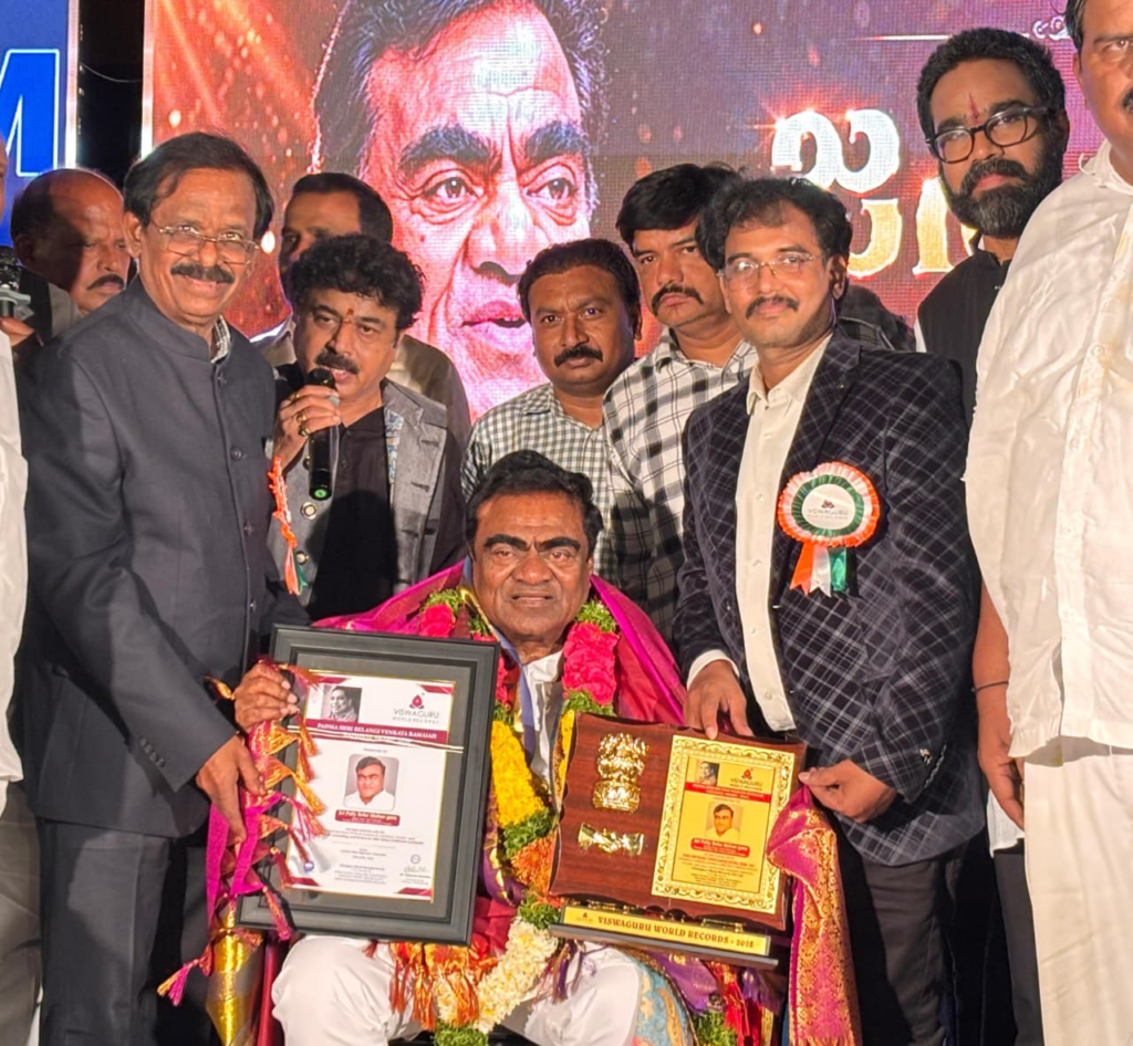 ప్రముఖ హాస్య నటులు మరియు మాజీ మంత్రివర్యులు బాబు మోహన్ గారి 74వ పుట్టిన రోజు పురస్కరించుకొని వారి 41 సంవత్సరాల సినీ జీవితాన్ని గుర్తు చేసుకొంటూ,మంగళవారం రాత్రి బేగంపేట లోని టూరిజం ప్లాజా లో ఇమ్మడి జ్యూయలర్స్ మరియు ఆర్.బి.ఎం వారు ఏర్పాటు చేసిన కార్యక్రమంలో ప్రముఖ డైరెక్టర్, ప్రొడ్యూసర్ నాగబాల సురేష్ గారి అధ్యక్షతన విశ్వగురు వరల్డ్ రికార్డ్స్ సంస్థ నుండి లెజెండరీ హాస్య నటులు పద్మశ్రీ రేలంగి వెంకట్రామయ్య జాతీయ అవార్డు -2026 ను బాబు మోహన్ గారికి విశ్వగురు వరల్డ్ రికార్డ్స్ సంస్థ ఫౌండర్,CEO డాక్టర్ సత్యవోలు రాంబాబు మరియు కమిటీ సభ్యులు డాక్టర్ కిషోర్ కుమార్, పారిశ్రామికవేత్త జగ్గయ్య, ప్రముఖ న్యాయవాది రవి చరణ్ అంద చేనట్లు డాక్టర్ సత్యవోలు రాంబాబు తెలిపారు.