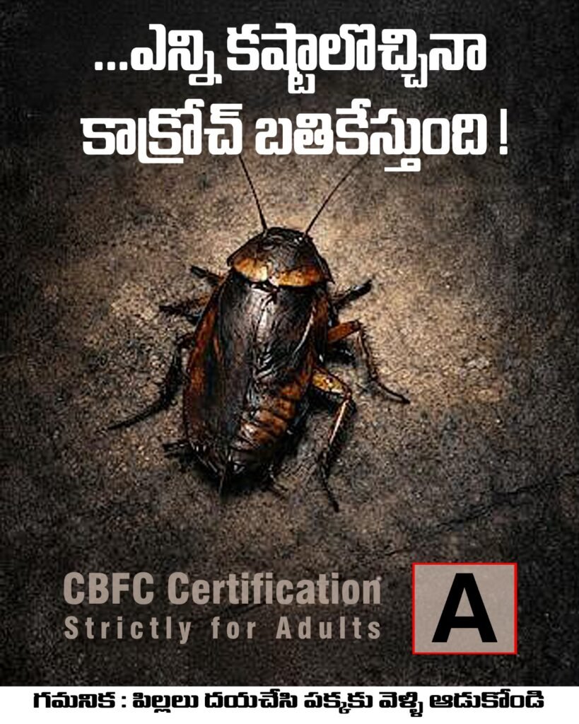 కాక్రోచ్ ని చంపితే చప్పట్లు కొడుతూ, సీతాకోక చిలుకలపై కవితలు రాసే ద్వంద విలువల మనస్తత్వాలని ప్రశ్నించే పాత్రలతో దర్శకుడు పి.సునీల్ కుమార్ రెడ్డి , శ్రీ లక్ష్మి పిక్చర్స్ బ్యానర్ పై బి. బాపిరాజు నిర్మాతగా వ్యవహరించిన చిత్రం “కాక్రోచ్ “ సెన్సార్ కార్యక్రమాలు పూర్తి చేసుకుంది.