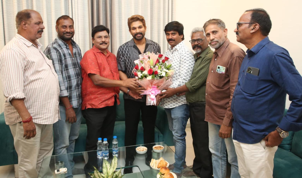 ఐకాన్ స్టార్ అల్లు అర్జున్ బర్త్ డే సందర్భంగా “ఫిల్మ్ క్రిటిక్స్ అసోసియేషన్” సభ్యులు ఆయన్ను కలిసి శుభాకాంక్షలు తెలిపారు. “రాకా” ఫస్ట్ లుక్ ను కూడా ఈసందర్భంగా అప్రిషియేట్ చేశారు. బర్త్ డే బోయ్ ను కలిసినవారిలో ఫిల్మ్ క్రిటిక్స్ అసోసియేషన్ గౌరవాధ్యక్షులు ప్రభు, అధ్యక్షులు బత్తుల ప్రసాద్, జనరల్ సెక్రటరీ సురేష్ కొండేటి, ట్రెజరర్ భరద్వాజ, వైస్ ప్రెసిడెంట్ జనార్దన్ లతోపాటు జాయింట్ సెక్రటరీ శ్యామ్ రావుట్ల, కార్యవర్గ సభ్యులు ధీరజ అప్పాజీ, కుమార్ తదితరులు ఉన్నారు. మీ అందర్నీ త్వరలోనే సావకాశంగా కలుస్తానని ఈ సందర్భంగా ఐకాన్ స్టార్ పేర్కొన్నారు.