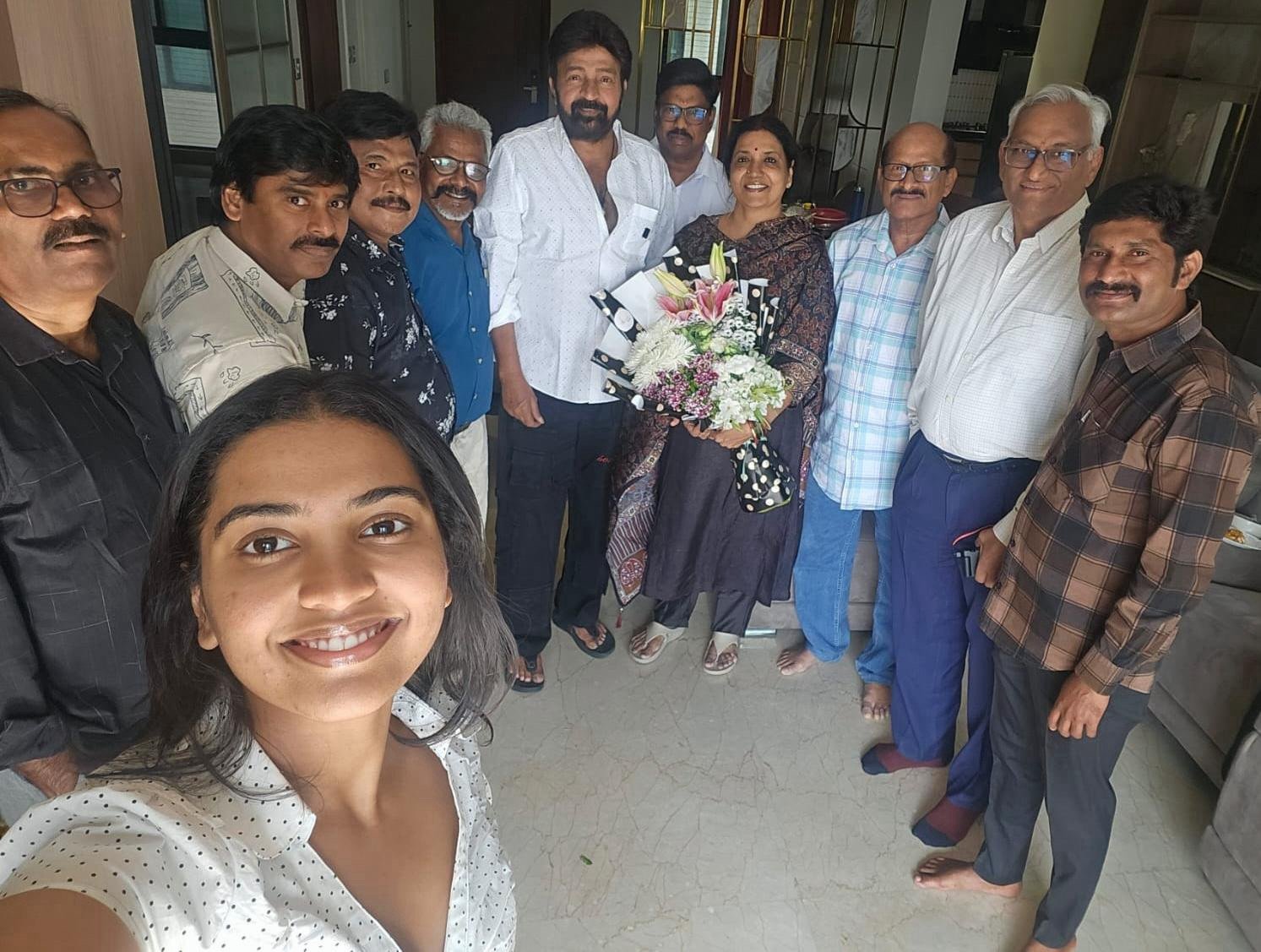 అప్పటికే డోర్స్ ఓపెన్ చేసి ఉంచిన జీవితగారు మమ్మల్ని చాలా ఆత్మీయంగా రిసీవ్ చేసుకున్నారు. లివింగ్ రూమ్ లో మమ్మల్ని కూర్చోబెట్టారు. అక్కడున్న పెద్ద పెద్ద సోఫాలకు తోడు అదనంగా కుర్చీలు వేయడంలో తమ సహాయకురాలికి తను కూడా సహాయం చేస్తుంటే మాకు కొంచెం ఇబ్బందిగా అనిపించింది. ఇంతలో వాళ్ళ రెండో అమ్మాయి (శివాత్మిక) వచ్చి అందరికీ నమస్కారాలు చేసి, ట్రేతో మంచినీళ్లు తెచ్చింది. ఈ ప్రేమపూర్వక ఆతిధ్యంతోనే మేమంతా ఉక్కిరిబిక్కిరి అవుతుండగానే… రాజశేఖర్ గారు నవ్వుతూఎంట్రీ ఇచ్చారు!!