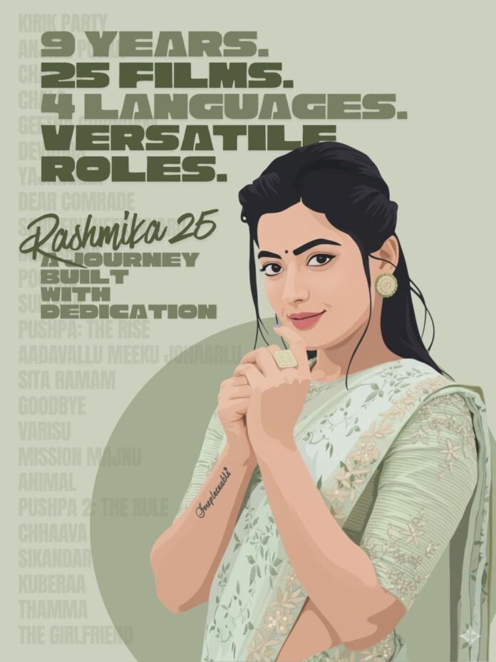 నేషనల్ క్రష్ రశ్మిక మందన్న ఇండియన్ ఫిలిం ఇండస్ట్రీలో 9 ఏళ్ల జర్నీ పూర్తి చేసుకుంది. 9 ఏళ్ల కెరీర్ లో నాలుగు భాషల్లో మొత్తం 25 మూవీస్ లో నటించింది రశ్మిక. ఈ సినిమాల్లో హిట్స్, సూపర్ హిట్స్, బ్లాక్ బస్టర్స్ తో పాటు బాక్సాఫీస్ రికార్డులు తిరగరాసిన సినిమాలు ఎన్నో ఉండటం విశేషం. హీరోయిన్స్ ప్రాంతీయంగా పేరు తెచ్చుకోవడం చూస్తుంటాం కానీ పాన్ ఇండియా స్థాయిలో వరుస విజయాలు సాధిస్తూ తన స్టార్ డమ్ క్రేజ్ చూపిస్తోంది రశ్మిక. అందం, నటన, ఆకర్షణతో దేశవ్యాప్తంగా ప్రేక్షకుల్ని ఆకట్టుకుంటోంది. మరో హీరోయిన్ కు లేనంత క్రేజ్ ను సొంతం చేసుకుంటోంది రశ్మిక.