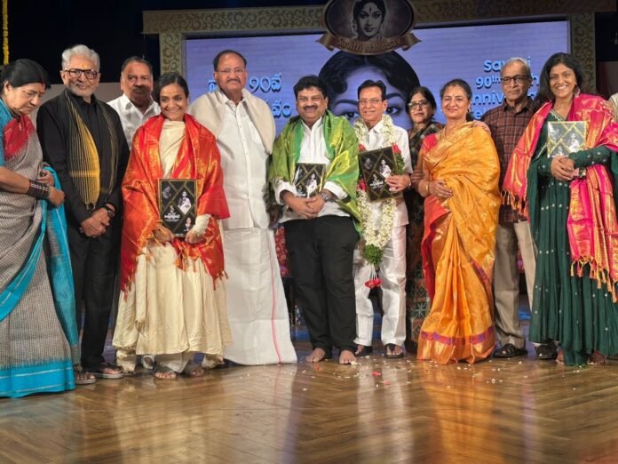మహానటి సావిత్రి 90వ జయంతి సందర్భంగా వారి కుమార్తె విజయ చాముండేశ్వరి ఆధ్వర్యంలో ‘సంగమం ఫౌండేషన్’ ఛైర్మన్ సంజయ్కిషోర్ నిర్వహణలో హైదరాబాద్ లో సావిత్రి మహోత్సవం అత్యంత వైభవంగా జరిగింది. సావిత్రి గారి ఫొటోలతో అందంగా తీర్చిదిద్దిన వేదిక పై జరిగిన ఈ జయంతి ఉత్సవాన్ని భారత మాజీ ఉప రాష్ట్రపతి ముప్పవరపు వెంకయ్య నాయుడు జ్యోతి ప్రజ్వలన గావించి ప్రారంభించారు. ఈ సందర్భంగా వెంకయ్య నాయుడు మాట్లాడుతూ- మహానటికి మరణం లేదని, నవరస అద్భుత నటనా కౌశలంతో ప్రేక్షకులను మైమరపించేవారని అన్నారు. తన నట జీవితంలో ప్రతి చిత్రంలో కూడా కేవలం పాత్ర మాత్రమే కనిపించేదని, సావిత్రి కనిపించేది కాదన్నారు.