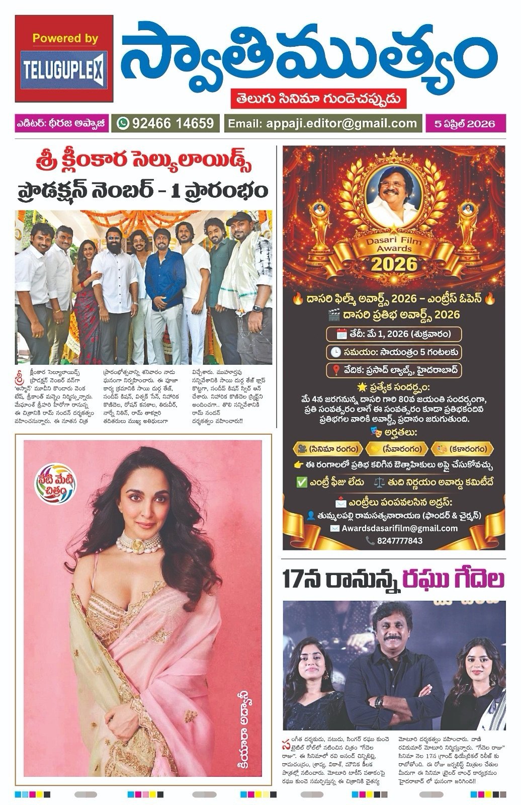 HomeEpaperSwathimutyam Epaper 5-03-2026 Epaper Swathimutyam Epaper 5-03-2026 By Teluguplex April 5, 2026 0 3 Share FacebookXPinterestWhatsApp - Advertisment - - Advertisment - Share FacebookXPinterestWhatsApp Previous articleహీరో కిరణ్ అబ్బవరం కేఏ ప్రొడక్షన్స్, సుమైర స్టూడియోస్ నిర్మిస్తున్న”తిమ్మరాజుపల్లి టీవీ” మూవీ నుంచి ‘నిజమేనా’ లిరికల్ సాంగ్ రిలీజ్Next articleనేషనల్ క్రష్ రశ్మిక మందన్నకు బర్త్ డే విశెస్ చెబుతూ స్పెషల్ వీడియో రిలీజ్ చేసిన “రణబాలి” మేకర్స్ Teluguplexhttps://lightgoldenrodyellow-wildcat-391238.hostingersite.com RELATED ARTICLES Epaper Swathimutyam Epaper 04-03-2026 April 4, 2026 Most Popular విచిత్ర ఫస్ట్ లుక్ ను విడుదల చేసిన దర్శకులు విఎన్. ఆదిత్ April 5, 2026 నేషనల్ క్రష్ రశ్మిక మందన్నకు బర్త్ డే విశెస్ చెబుతూ స్పెషల్ వీడియో రిలీజ్ చేసిన “రణబాలి” మేకర్స్ April 5, 2026 హీరో కిరణ్ అబ్బవరం కేఏ ప్రొడక్షన్స్, సుమైర స్టూడియోస్ నిర్మిస్తున్న”తిమ్మరాజుపల్లి టీవీ” మూవీ నుంచి ‘నిజమేనా’ లిరికల్ సాంగ్ రిలీజ్ April 4, 2026 జర్నలిస్టు మిత్రుల చేతుల మీదుగా రఘుకుంచె “గేదెల రాజు” సినిమా ట్రైలర్ రిలీజ్, ఈ నెల 17న గ్రాండ్ థియేట్రికల్ రిలీజ్ కు వస్తున్న మూవీ April 4, 2026 Load more Recent Comments