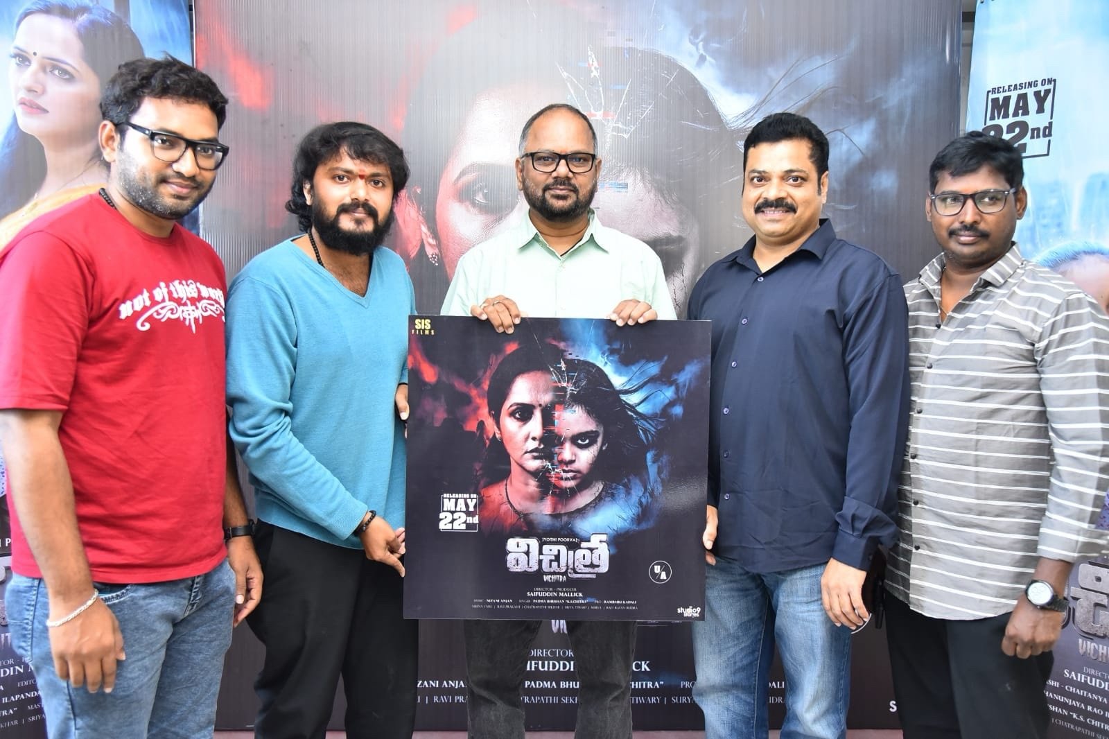 ముందుగా దర్శకుల సంఘం ఎన్నికల్లో అత్యధిక మెజారిటీ గెలుపొందిన వి.ఎన్ ఆదిత్య గారికి ముందుగా హృదయ పూర్వక అభినందనలు తెలిపారు, పోస్టర్ రిలీజ్ కు విచ్చేసిన దర్శకులు వి.ఎన్ ఆదిత్య గారికి ప్రత్యేక ధన్యవాదాలు, మా విచిత్ర సినీమా చాలా బాగా వచ్చింది..వచ్చే నెల ప్రేక్షకుల ముందుకు వస్తుంది..మీ అందరి సపోర్ట్ కావాలని కోరారు.